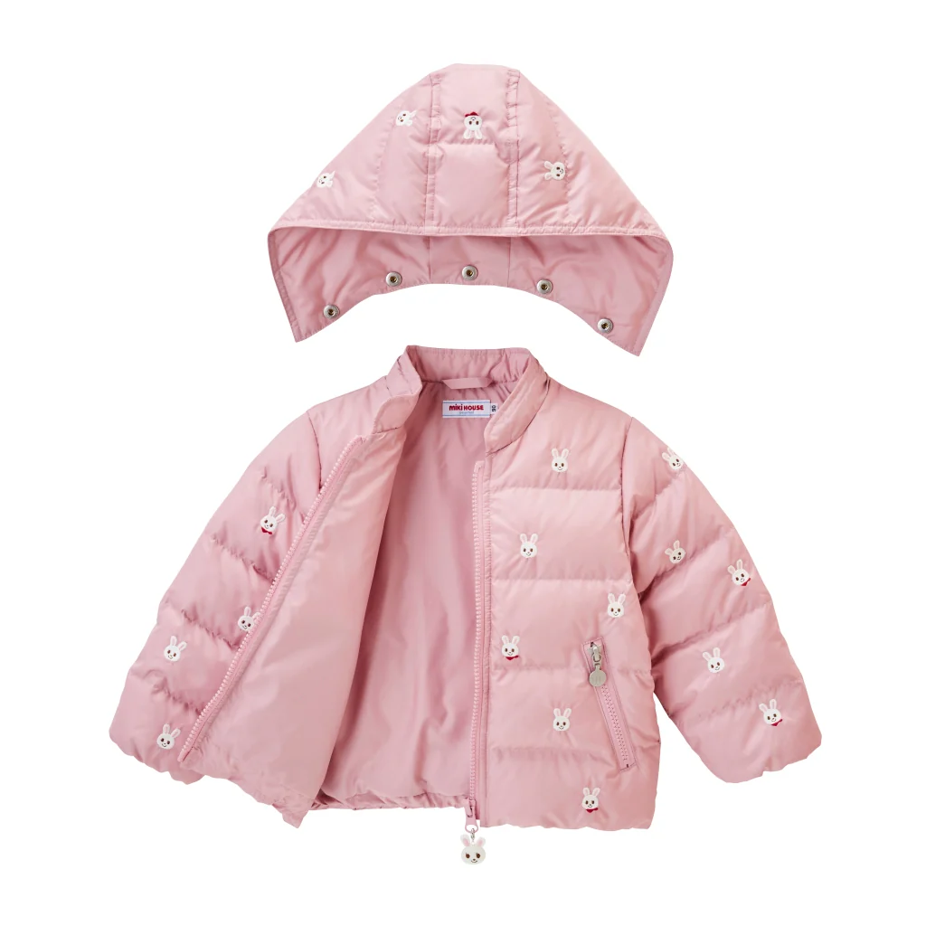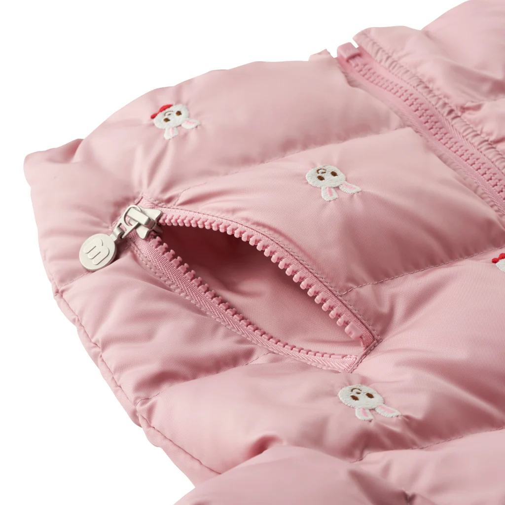 La doudoune rose Usako avec sa capuche amovible accompagnera les plus frileuses tout l’hiver.